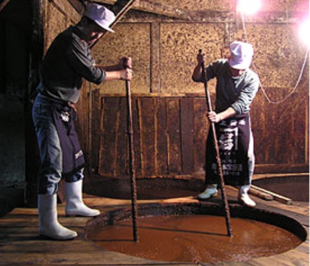They add Aspergillus spore into the grain mixture. The Aspergillus Oryzae and Aspergillus Sojae is used for brewing the soy sauce.