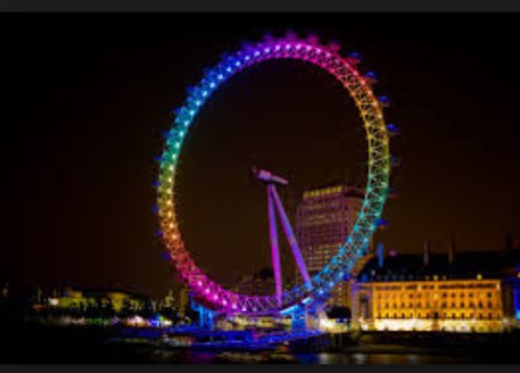 The London eye is a giant Ferris wheel on the south Bank of the river Thames in London. The wheel is 443 feet tall.