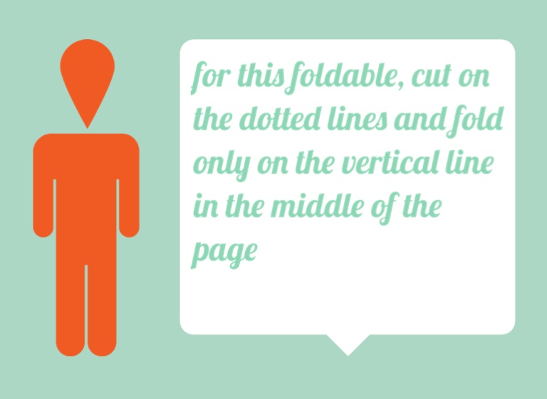 for this foldable, cut on the dotted lines and fold only on the vertical line in the middle of the page