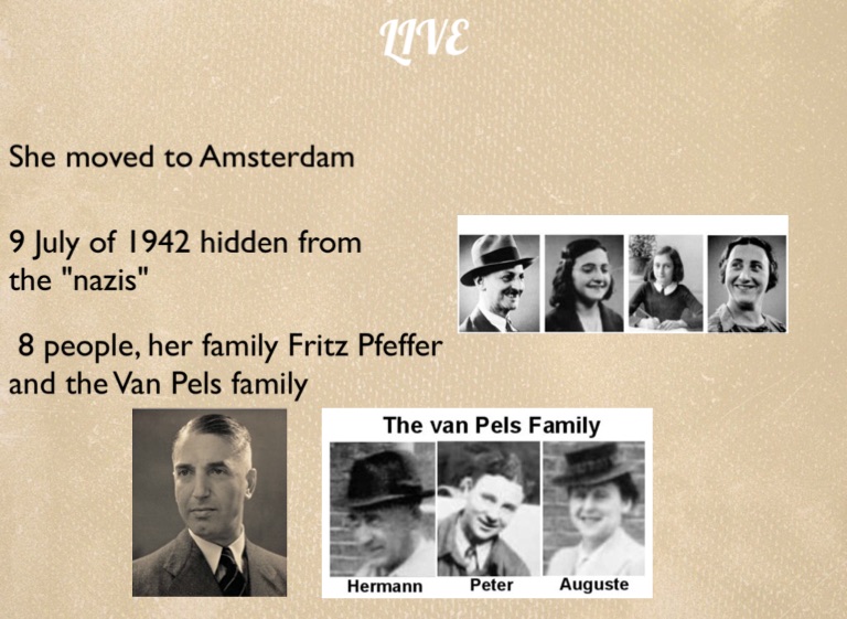 8 people, her family Fritz Pfeffer and the Van Pels family