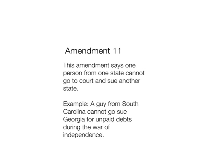 Example: A guy from South Carolina cannot go sue Georgia for unpaid debts during the war of independence.