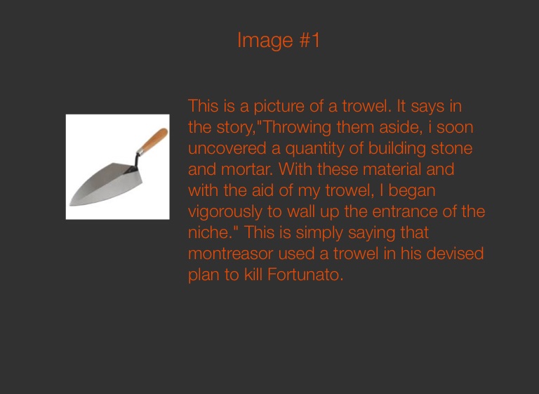 This is a picture of a trowel. It says in the story,"Throwing them aside, i soon uncovered a quantity of building stone and mortar. With these material and with the aid of my trowel, I began vigorously to wall up the entrance of the niche." This is simply saying that montreasor used a trowel in his devised plan to kill Fortunato.