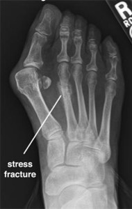 A metatarsal stress fracture is an injury that involves tiny cracks in the bone.