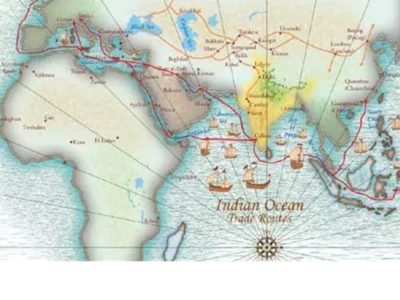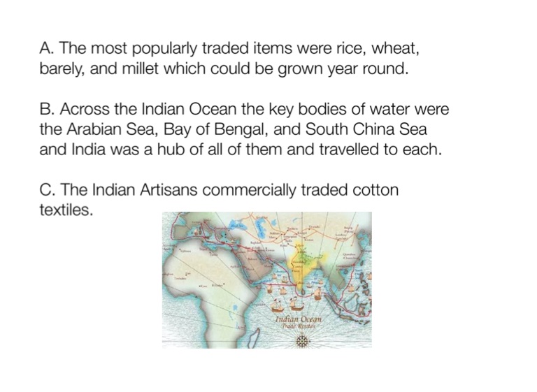 B. Across the Indian Ocean the key bodies of water were the Arabian Sea, Bay of Bengal, and South China Sea and India was a hub of all of them and travelled to each.