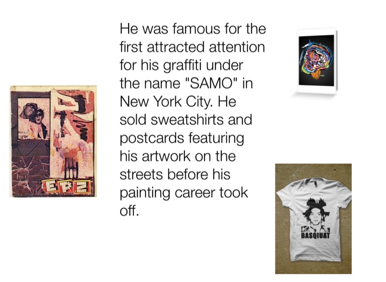 He was famous for the first attracted attention for his graffiti under the name "SAMO" in New York City. He sold sweatshirts and postcards featuring his artwork on the streets before his painting career took off.