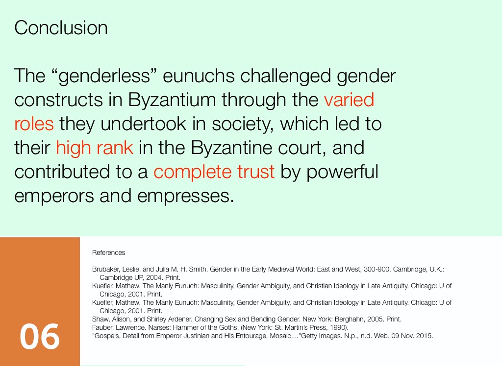 The “genderless” eunuchs challenged gender constructs in Byzantium through the varied roles they undertook in society, which led to their high rank in the Byzantine court, and contributed to a complete trust by powerful emperors and empresses.
