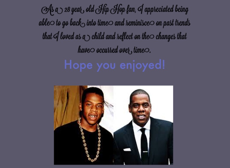 As a 28 year old Hip Hop fan, I appreciated being able to go back into time and reminisce on past trends that I loved as a child and reflect on the changes that have occurred over time.