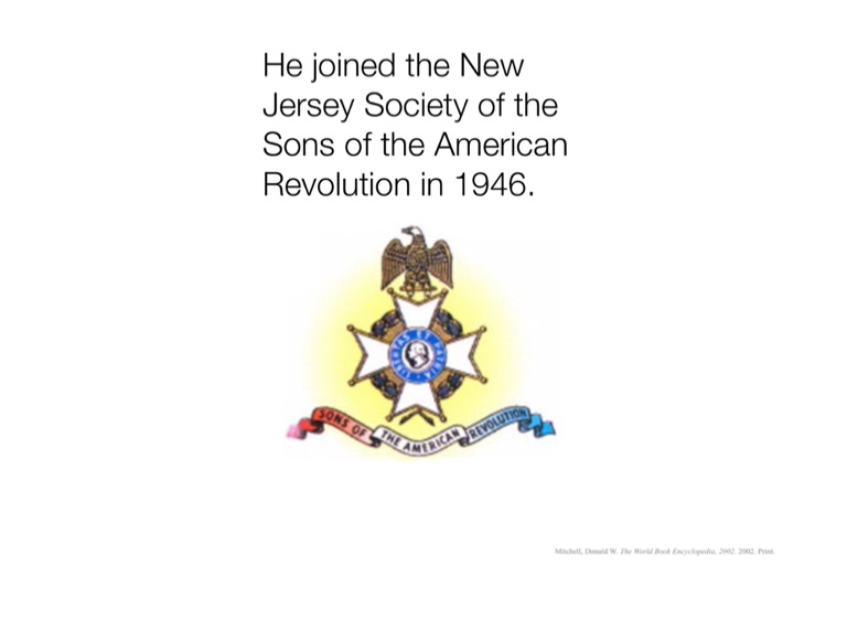 He joined the New Jersey Society of the Sons of the American Revolution in 1946.