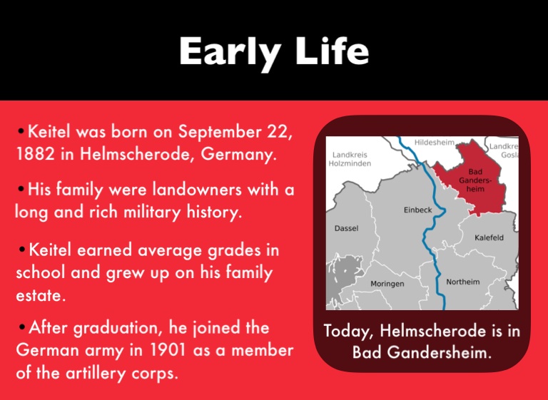 •Keitel was born on September 22, 1882 in Helmscherode, Germany.