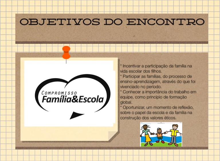 * Oportunizar, um momento de reflexão, sobre o papel da escola e da família na construção dos valores éticos.
