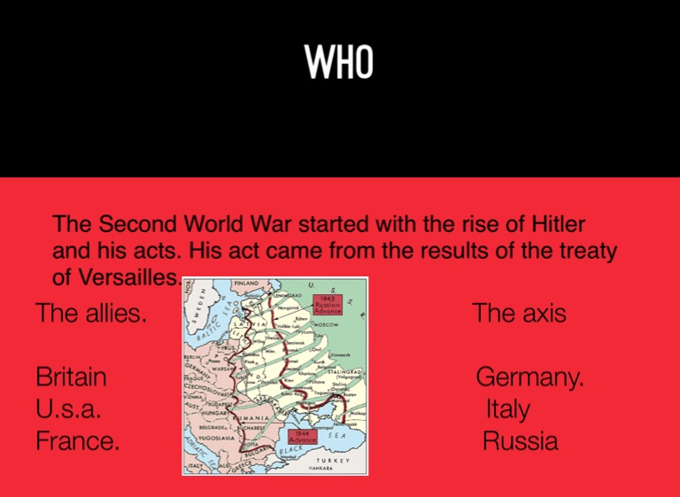 The Second World War started with the rise of Hitler and his acts. His act came from the results of the treaty of Versailles.