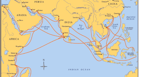 As early as the fifth century B.C.E., Indian merchants had traveled to the islands of Indonesia and the southeast Asian mainland, where they exchanged pearls, cotton, black pepper, and Indian manufactured goods for spices and exotic local products. Many of those goods did not remain in India but, instead, traveled west through the Arabian Sea to the lands bordering the Persian Gulf and the Red Sea. Indian products also found markets in the Mediterranean basin. Indian pepper became so popular there that the Romans established direct commercial relations and built several trading settlements in southern India.