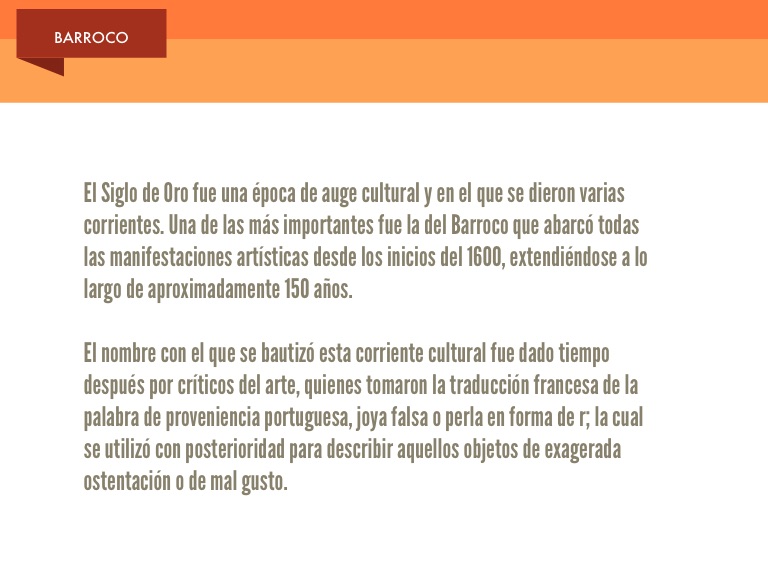 El Siglo de Oro fue una época de auge cultural y en el que se dieron varias corrientes. Una de las más importantes fue la del Barroco que abarcó todas las manifestaciones artísticas desde los inicios del 1600, extendiéndose a lo largo de aproximadamente 150 años.