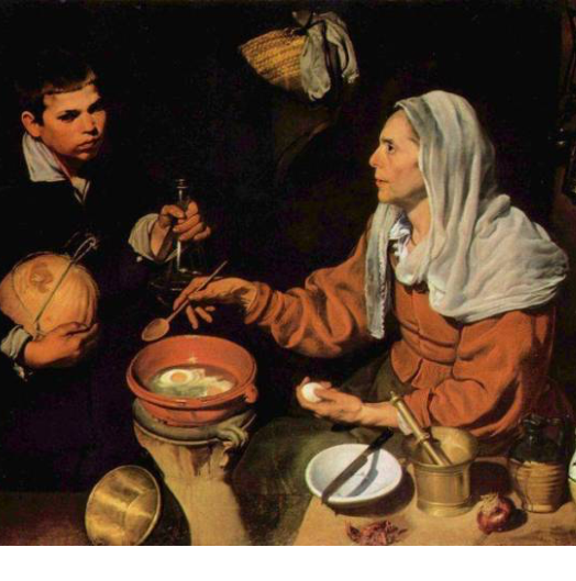 Paralelamente, también nace el arte temático de naturalezas muertas, como bodegones, paisajes, e incluso costumbristas (con solo ver la imagen de Vieja friendo huevos, de Velázquez podremos darnos una idea de lo que esto significaba).Una nueva pauta que se diferenció del renacimiento, fue que ya los rostros de los bellos modelos desaparecieron, dando lugar a expresiones naturales, resultándonos hoy en día hasta un poco chocantes.