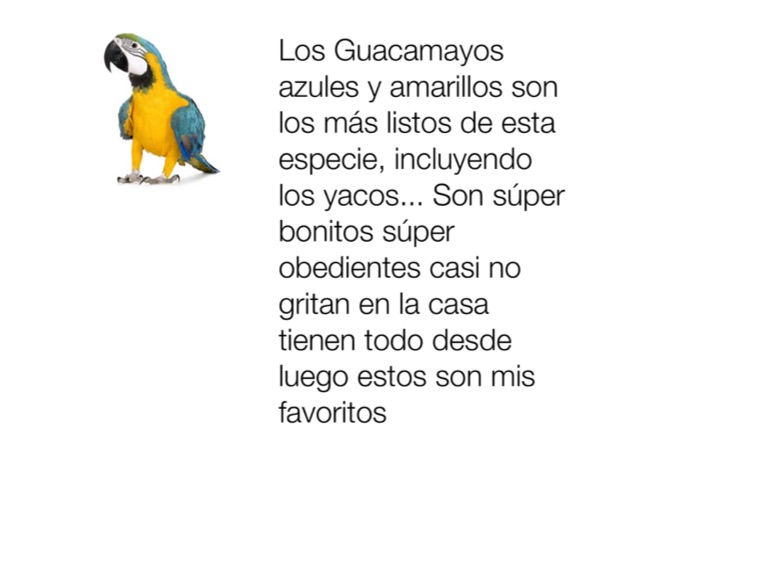 Los Guacamayos azules y amarillos son los más listos de esta especie, incluyendo los yacos... Son súper bonitos súper obedientes casi no gritan en la casa tienen todo desde luego estos son mis favoritos