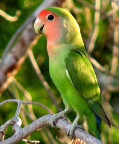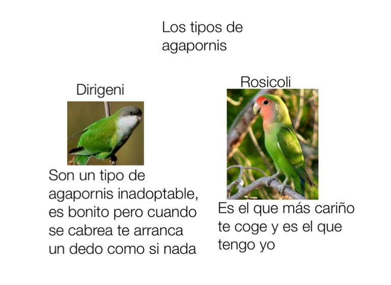 Son un tipo de agapornis inadoptable, es bonito pero cuando se cabrea te arranca un dedo como si nada