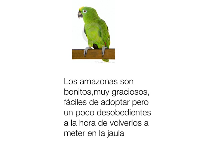 Los amazonas son bonitos,muy graciosos, fáciles de adoptar pero un poco desobedientes a la hora de volverlos a meter en la jaula