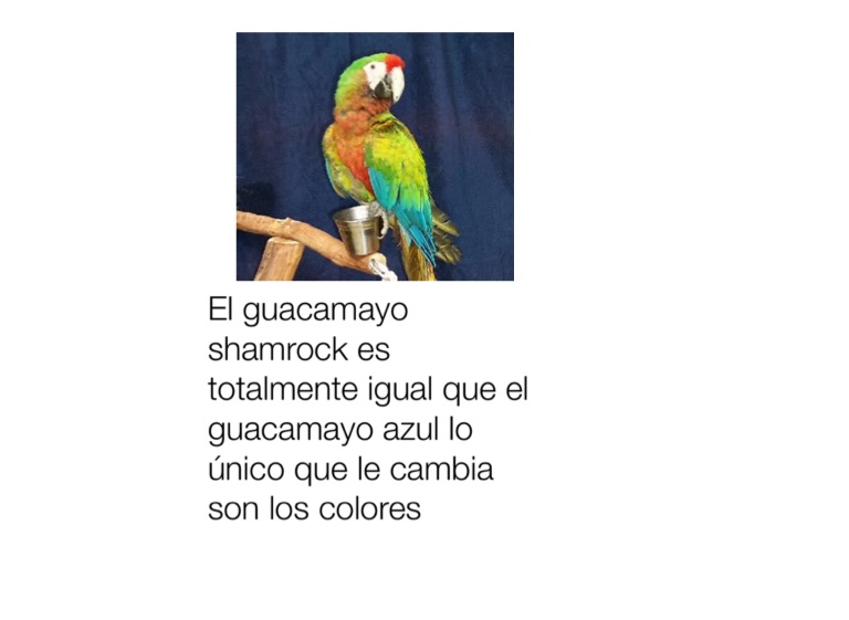 El guacamayo shamrock es totalmente igual que el guacamayo azul lo único que le cambia son los colores