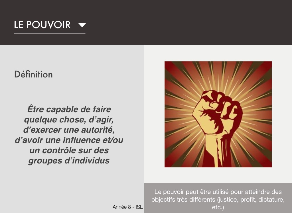 Le pouvoir peut être utilisé pour atteindre des objectifs très différents (justice, profit, dictature, etc.)