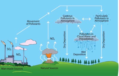 - Carbon dioxide from the air dissolves in the rain to produce carbonic acid