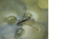 A water strider sitting on the water, it doesn't break the surface because of it specially designed feet