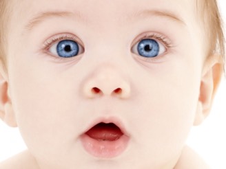 For example, a trait of the baby shown above, is the blue color of its eyes.