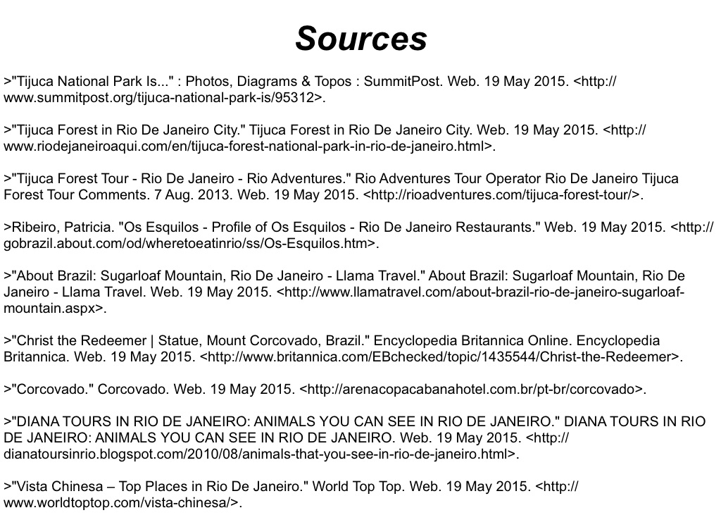 >"Tijuca Forest Tour - Rio De Janeiro - Rio Adventures." Rio Adventures Tour Operator Rio De Janeiro Tijuca Forest Tour Comments. 7 Aug. 2013. Web. 19 May 2015. <http://rioadventures.com/tijuca-forest-tour/>.