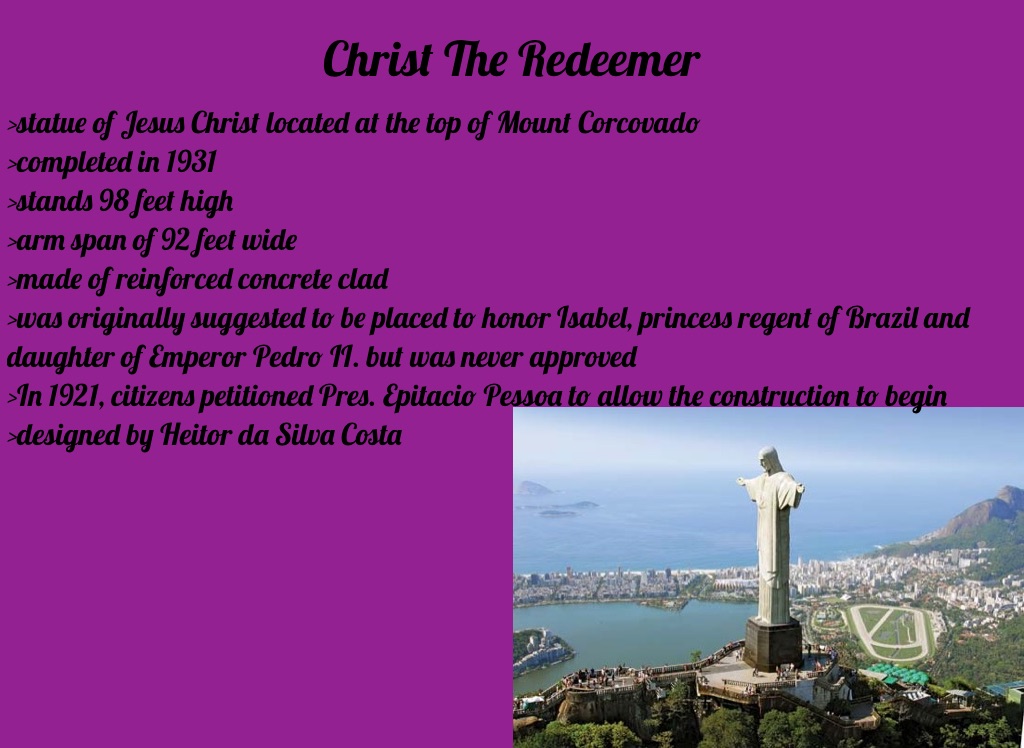 >In 1921, citizens petitioned Pres. Epitacio Pessoa to allow the construction to begin