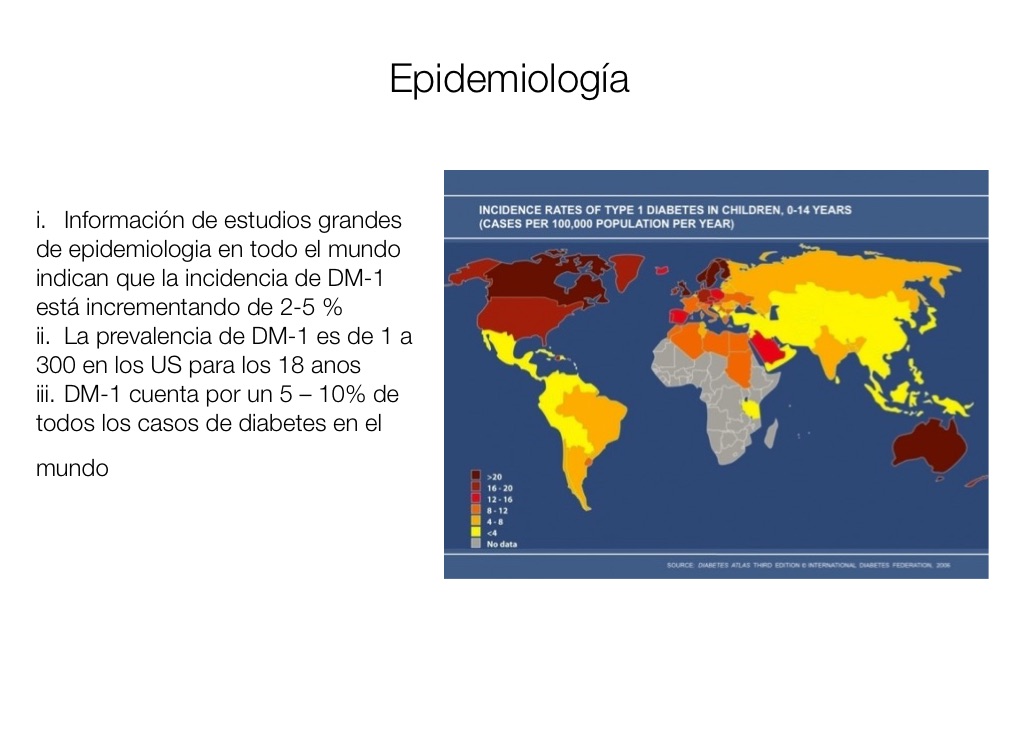 i. Información de estudios grandes de epidemiologia en todo el mundo indican que la incidencia de DM-1 está incrementando de 2-5 %