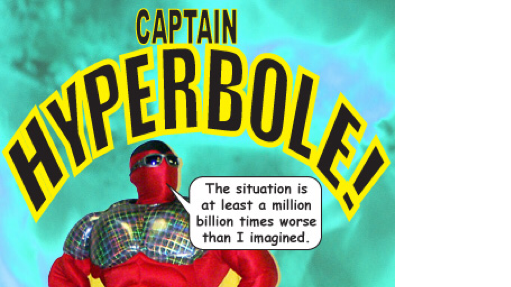 An exaggerated statement used to heighten effect. It is not used to mislead the reader, but to emphasize the point.
