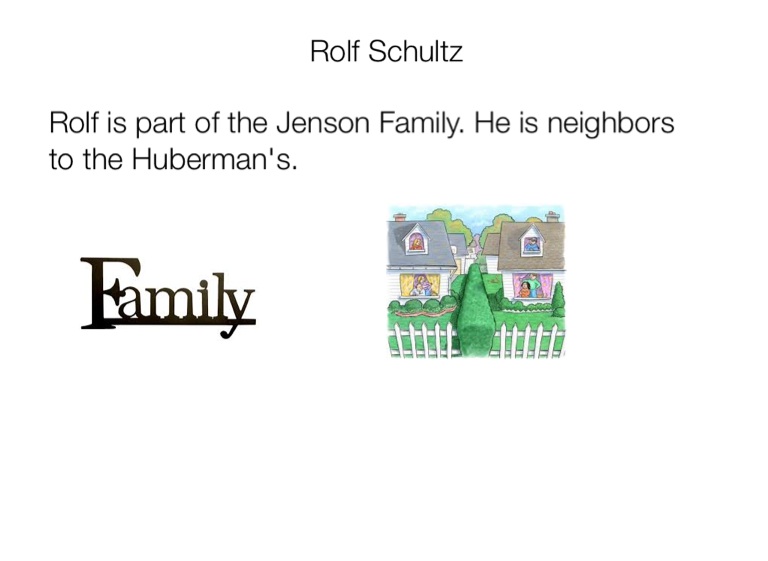 Rolf is part of the Jenson Family. He is neighbors to the Huberman's.