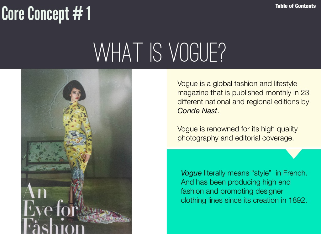 Vogue literally means “style” in French. And has been producing high end fashion and promoting designer clothing lines since its creation in 1892.