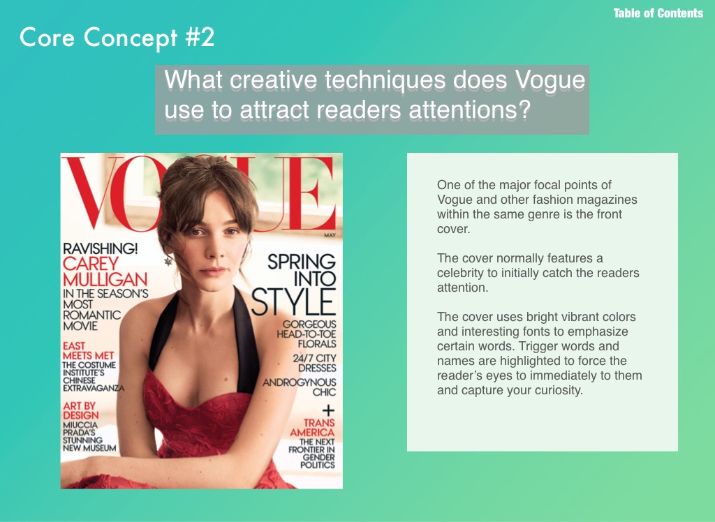What creative techniques does Vogue use to attract readers attentions?