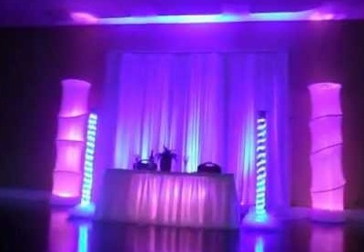 The lights shown on the the left, as well as the backdrop on the right, will change colors throughout the show.