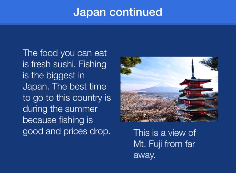 The food you can eat is fresh sushi. Fishing is the biggest in Japan. The best time to go to this country is during the summer because fishing is good and prices drop.