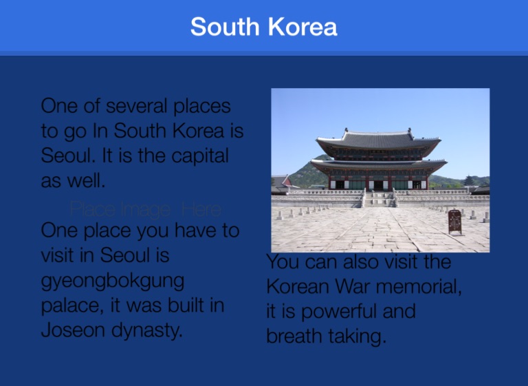 One of several places to go In South Korea is Seoul. It is the capital as well.