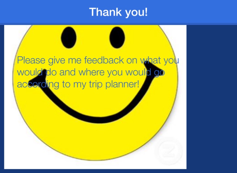 Please give me feedback on what you would do and where you would go according to my trip planner!