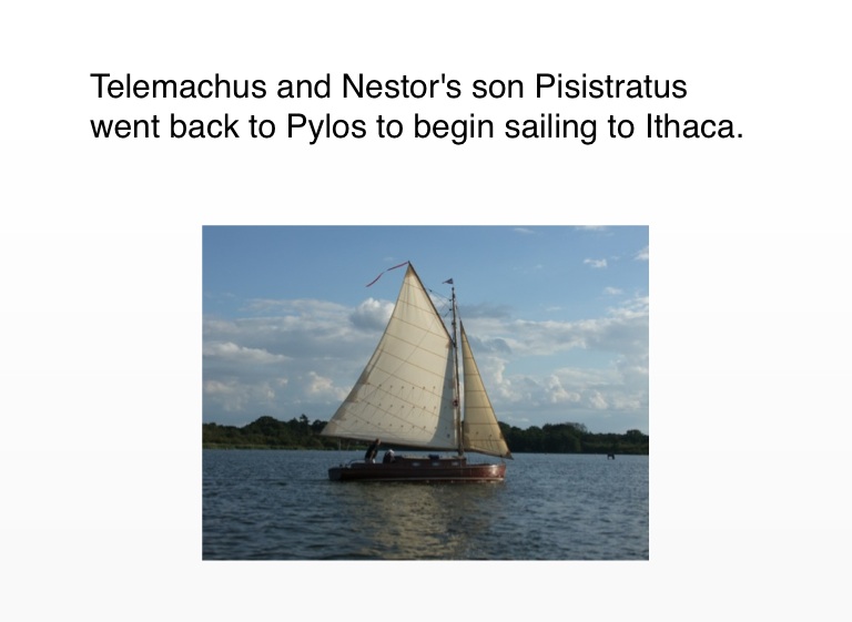 Telemachus and Nestor's son Pisistratus went back to Pylos to begin sailing to Ithaca.