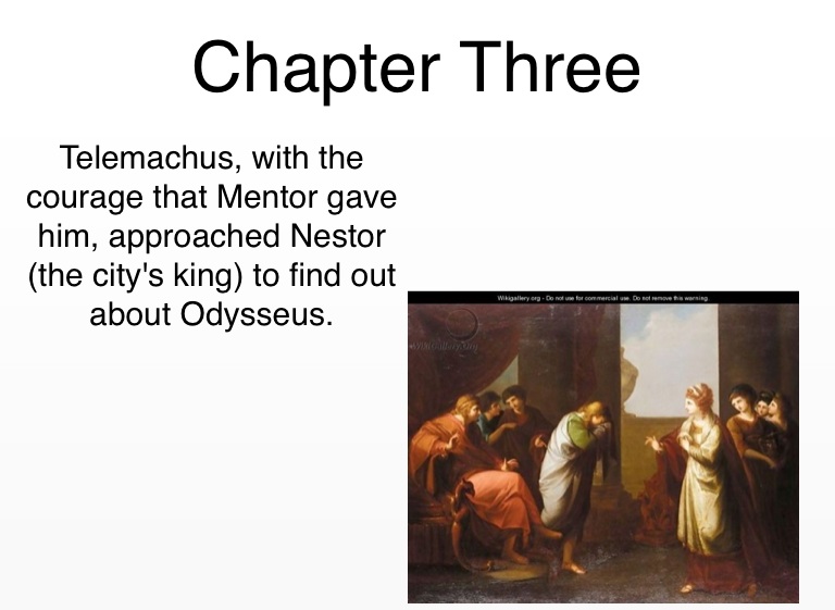 Telemachus, with the courage that Mentor gave him, approached Nestor (the city's king) to find out about Odysseus.