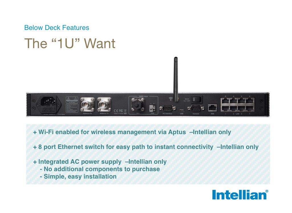 + Wi-Fi enabled for wireless management via Aptus –Intellian only