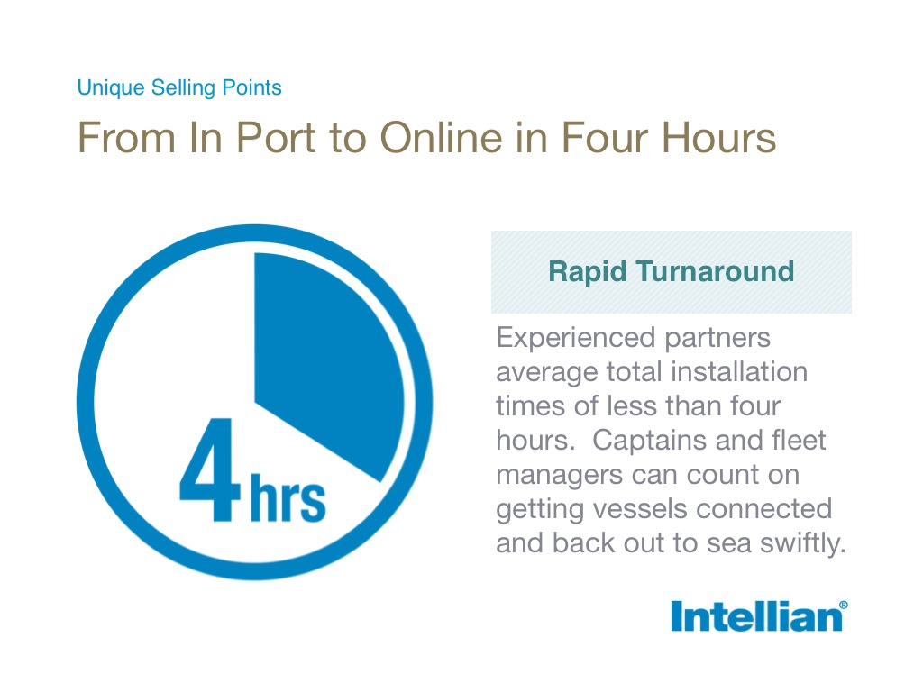 Experienced partners average total installation times of less than four hours. Captains and fleet managers can count on getting vessels connected and back out to sea swiftly.