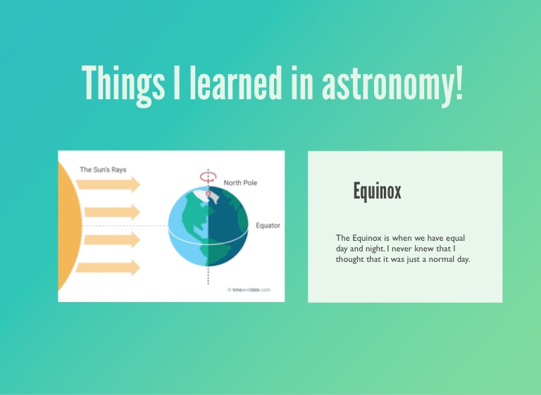 The Equinox is when we have equal day and night. I never knew that I thought that it was just a normal day.