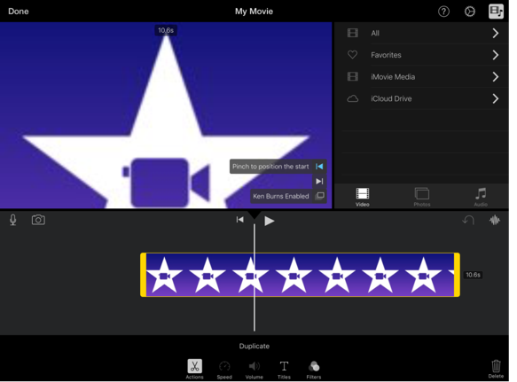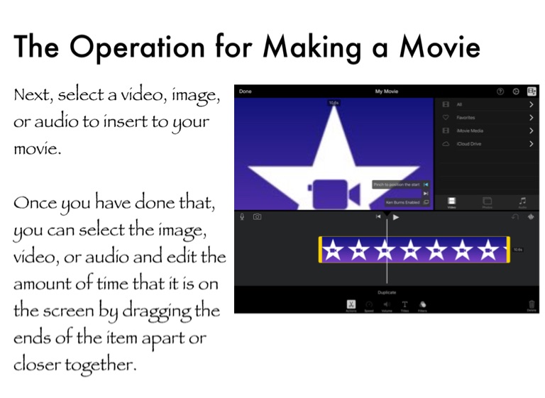 Once you have done that, you can select the image, video, or audio and edit the amount of time that it is on the screen by dragging the ends of the item apart or closer together.
