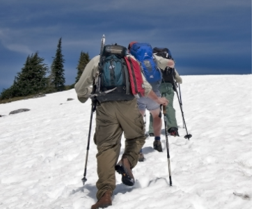 Definition- walk slowly and with heavy steps, typically because of exhaustion or harsh conditions.