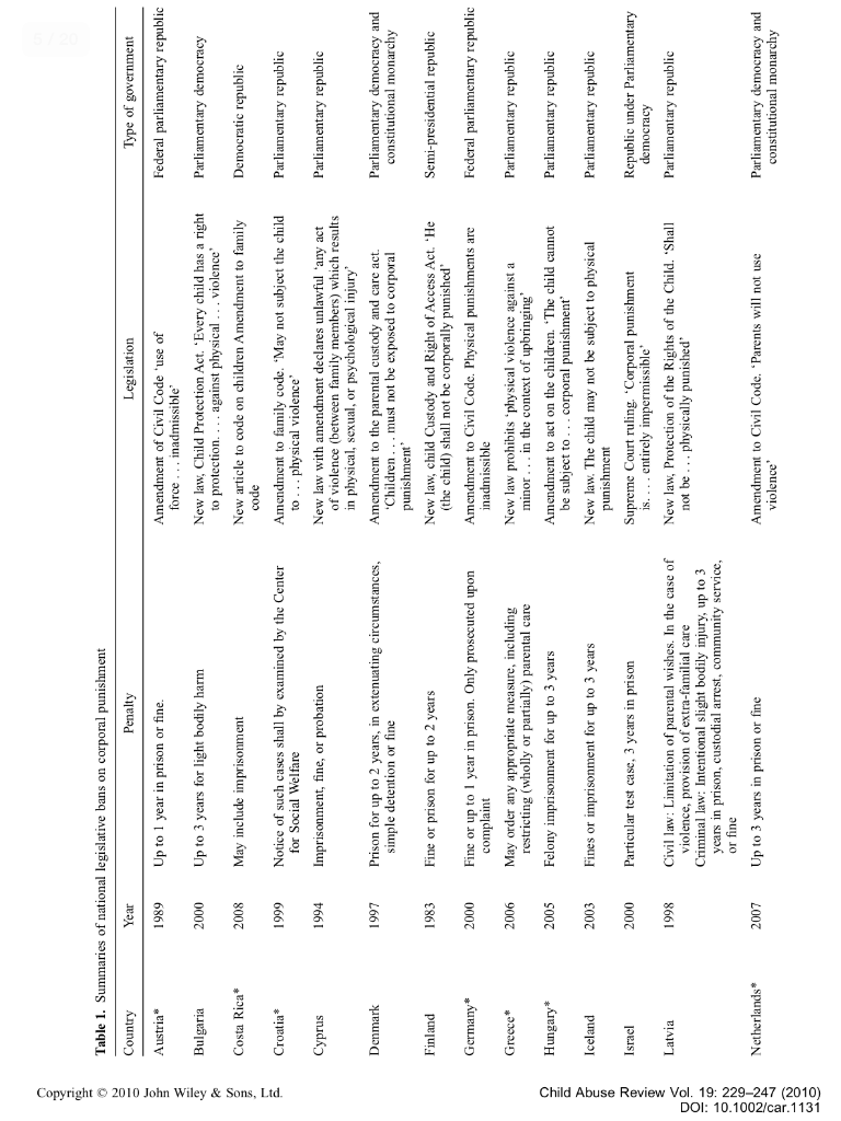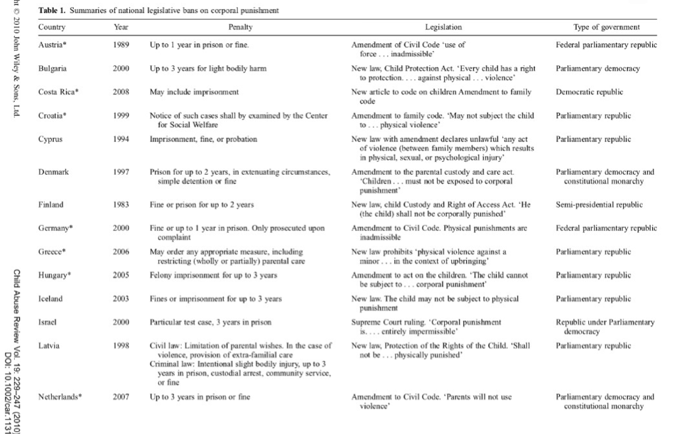 Countries have bans against corporal punishment
