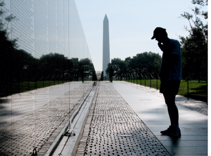 Black granite that reflects to represent the war, park, the walls seemed to stretch into the distance,directing us towards the Washington monument.
