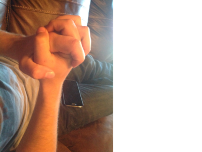 My right thumb goes on top his left thumb goes on top
