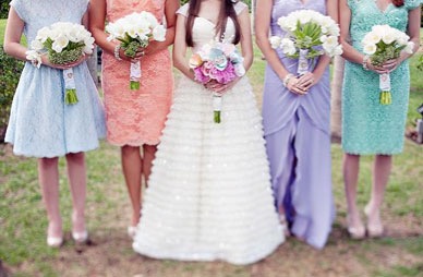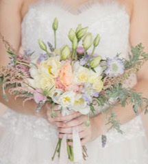 Example: Soft shades of blush, taupes and pastels will compliment each other. While accents of white, ivory and greens will make the floral elements pop. Wood and brass tones will give a masculine feel to this otherwise feminine color palette.