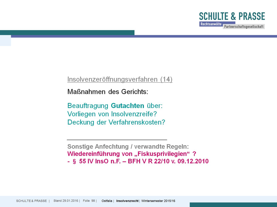 Ostfalia - Vorlesung InsolvenzRecht - Sommersemester 2016 - Entwurf