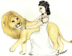 "Eurylochus came running back to the ship and spread the alarm. I now shouldered the burden of command and set out to investigate. Fortunately I met Hermes along the way. Zeus's herald warned me that I too would be transformed by Circe's witchery unless I followed his instructions. I was to accept the potion that she gave me, knowing that I would be protected by a godly charm -- a sprig of herb called moly that mortals dare not harvest. Then when she raised her wand I was to draw my sword. Hermes gave me the moly, then departed. I made my way to the house in the clearing and Circe bade me enter. I downed the potion. Then just as she showed her wand, I unsheathed my sword and held it to her throat."